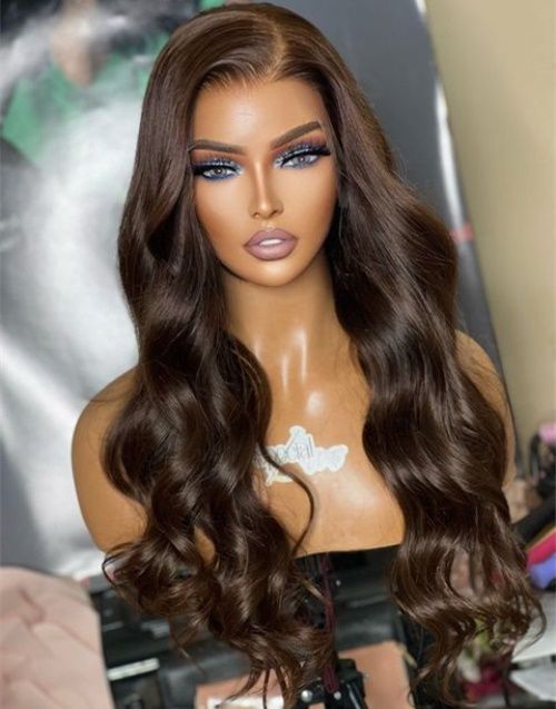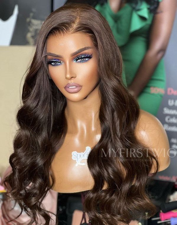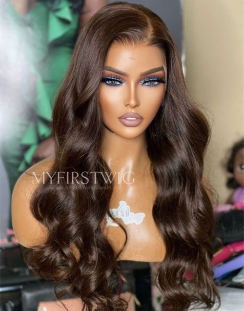 Aspecialunit - Dark Brown Wavy Malaysian Human Hair Lace Front Wig - SPE022