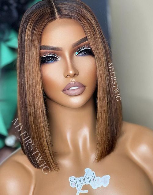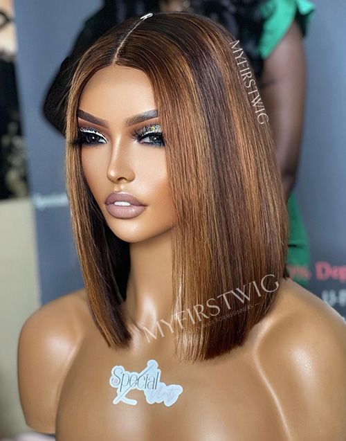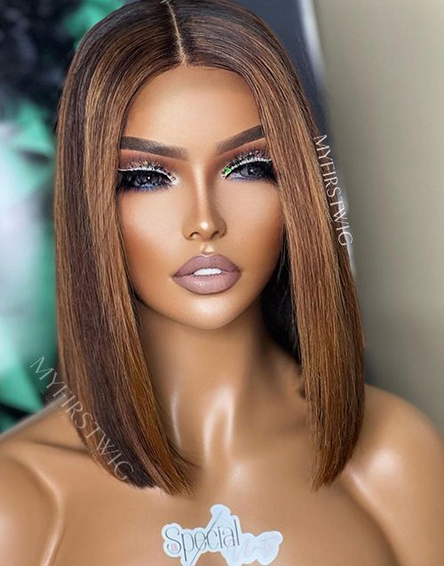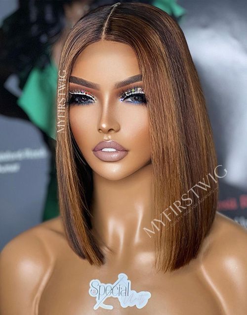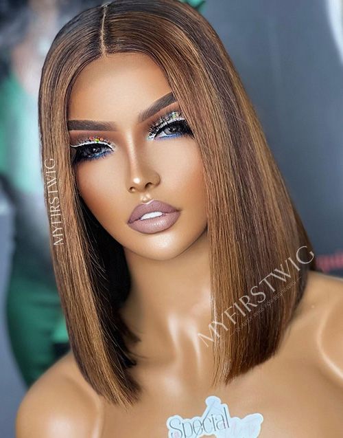 Aspecialunit-Malaysian Hair Brown Ombre Highlight Bob Lace Front Wig - SPE004