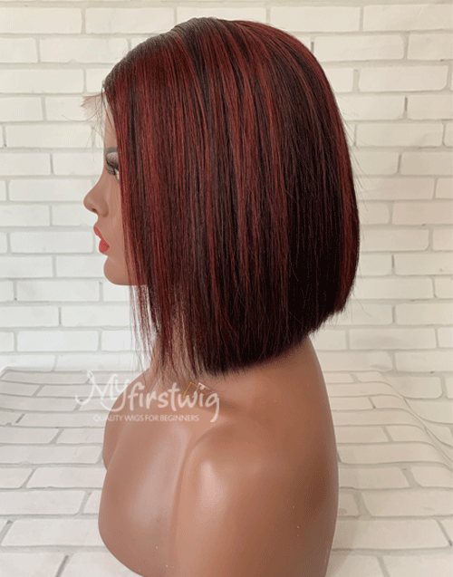 Deisha - Malaysian Burgundy Highlight Hair Bob Lace Front Wig - LFB011