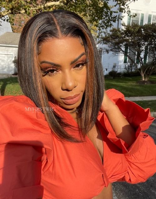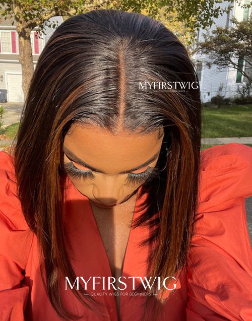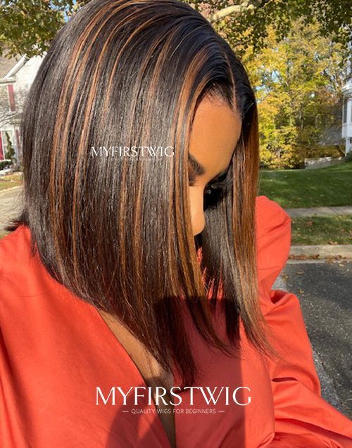 Jada - Highlight Brown Bob Short Hair Glueless Lace Front Wig - LFB010
