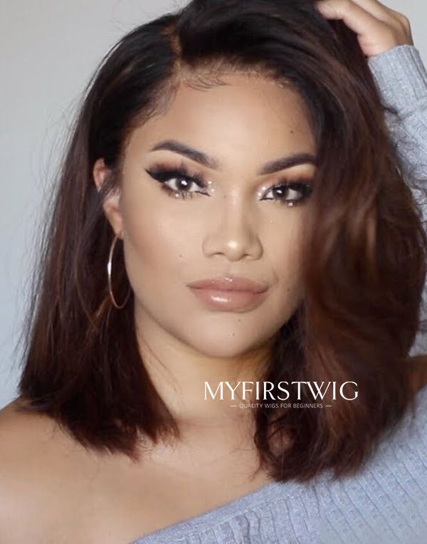 Malaysian Brown Ombre Straight Bob Lace Front Wig - LFB045