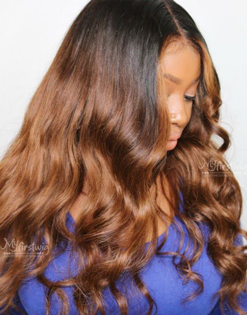 Ombre Brown Wavy Lace Front Wig Malaysian Virgin Hair - LFW064