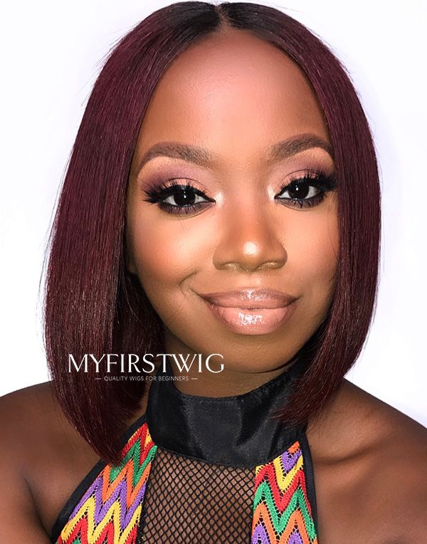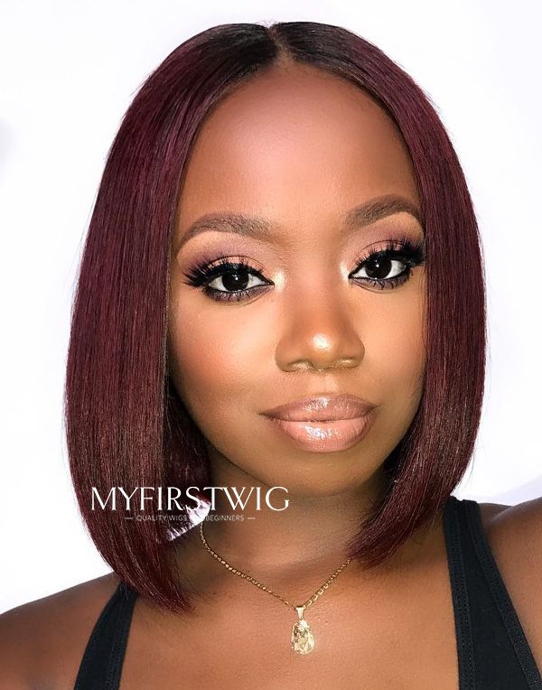 Reddish Brown Short Bob Hair Lace Front Wig Malaysian Human Hair - LFB046
