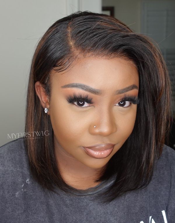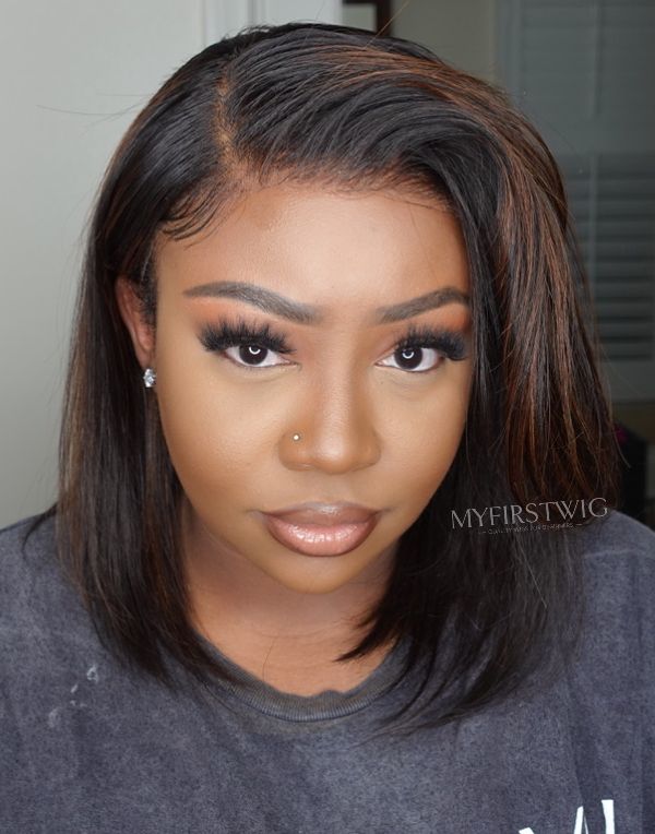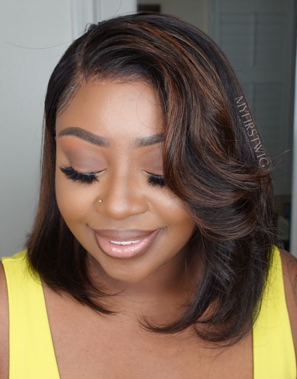Saundra - Highlight Brown Straight Bob Glueless Invisible Lace Front Wig - LFB043