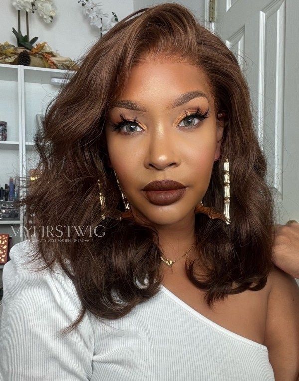 Soft Wavy Dark Caramel Undetectable Glueless Lace Wig - LFW095