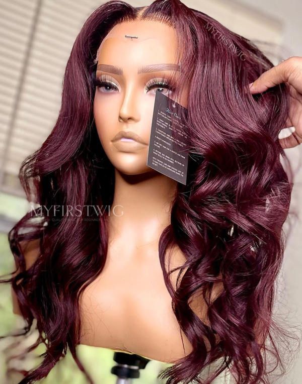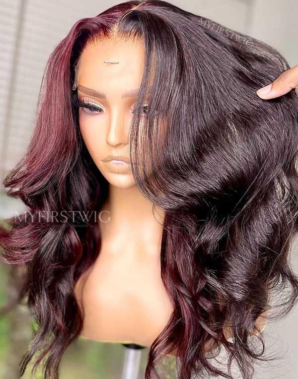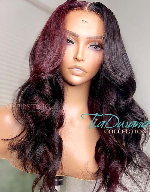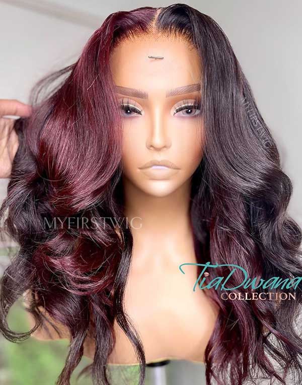 TiaDwana- Malaysian Human Hair Burgundy Ombre Wavy Lace Front Wig - TDC006
