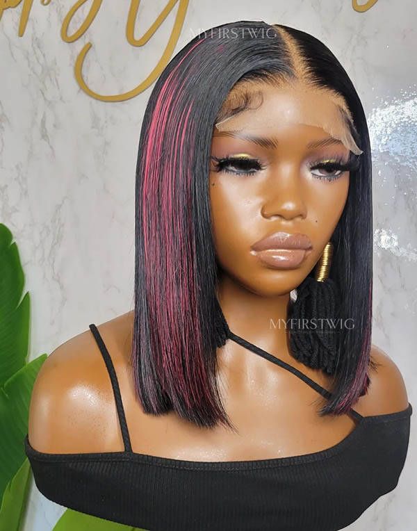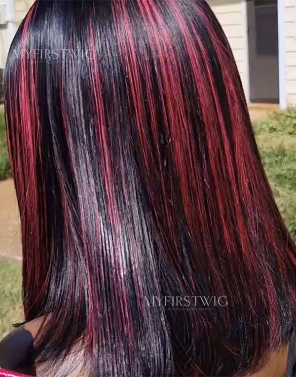 UnitsbyKesha - Malaysian Human Hair Burgundy Highlight Lace Front Wig - KESHA003