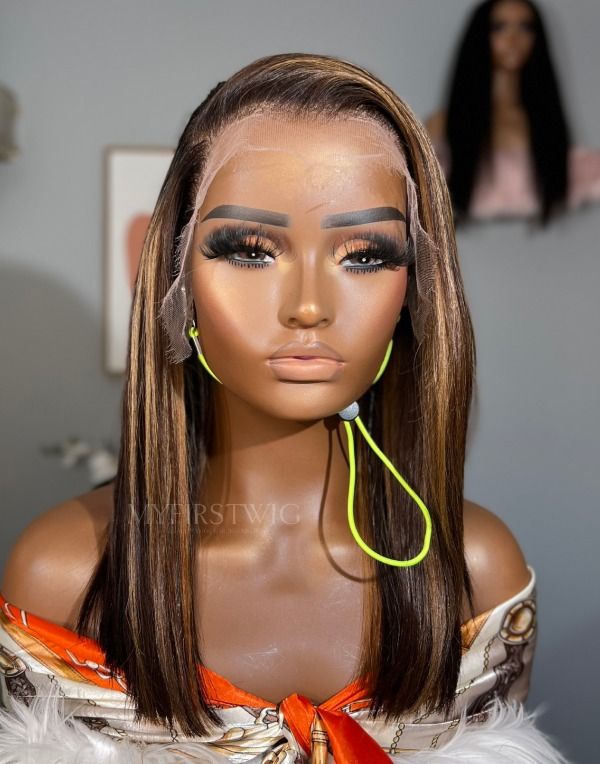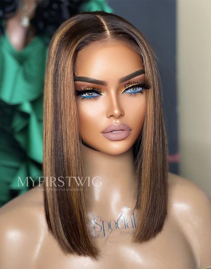 Aspecialunit-Malaysian Hair Brown Ombre Highlight Bob Lace Front Wig - SPE004