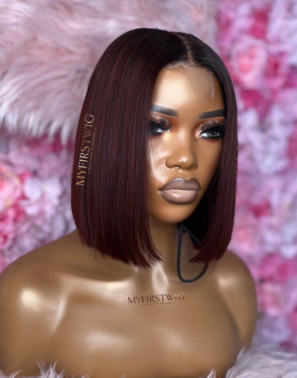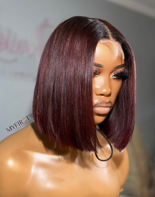 OpHair - Burgundy Blunt Cut Bob Glueless Human Hair Lace Wig - OPH089