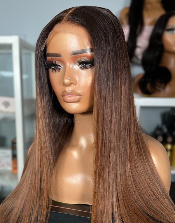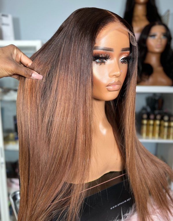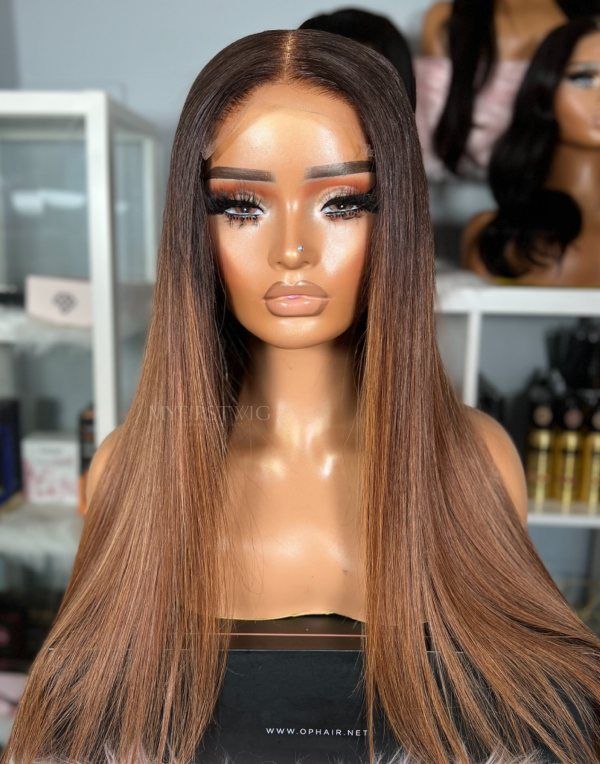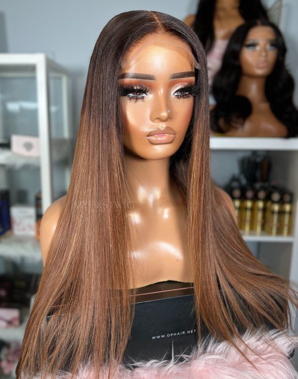 OpHair - Ombre Brown Straight Glueless Human Hair Lace Wig - OPH101