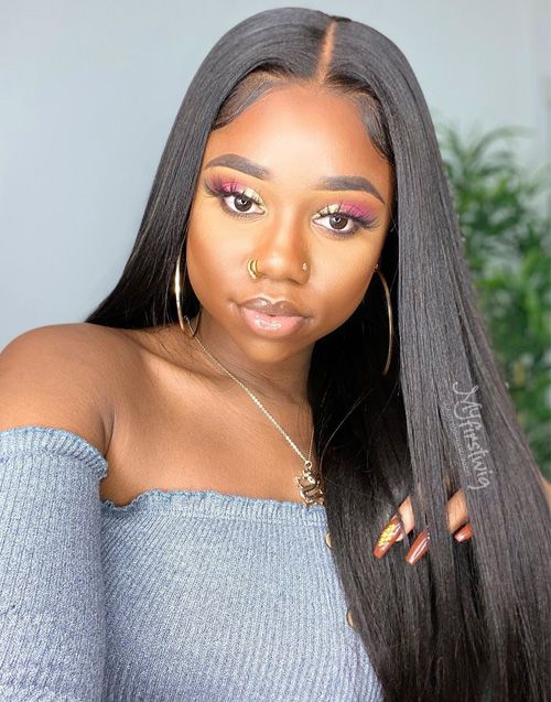 The V shape allows for a seamless blend between the wig and the wearer's natural hairline, less of their own hair exposed than U part wig. Both no leave out and leave out installs are available.