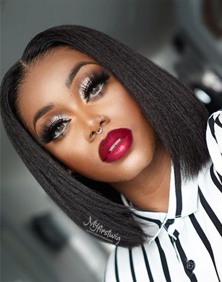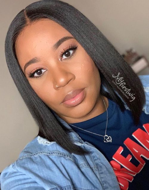 V Part Wig - Short Kinky Straight Blunt Cut Bob - VPK008
