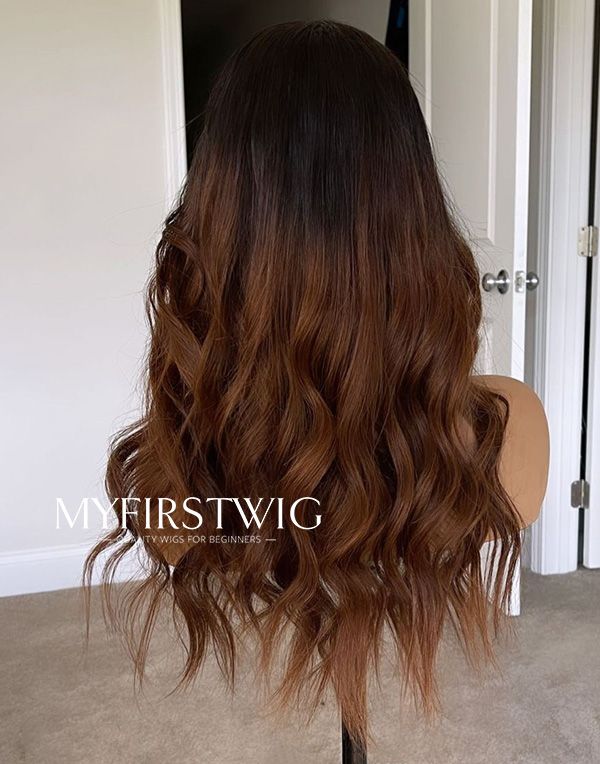 Malaysian Human Hair Brown Ombre Beach Wave Lace Front Wig - LFW086