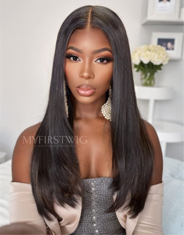 Layerer Cut Yaki Straight Glueless Human Hair Lace Front Wig - ANI8002