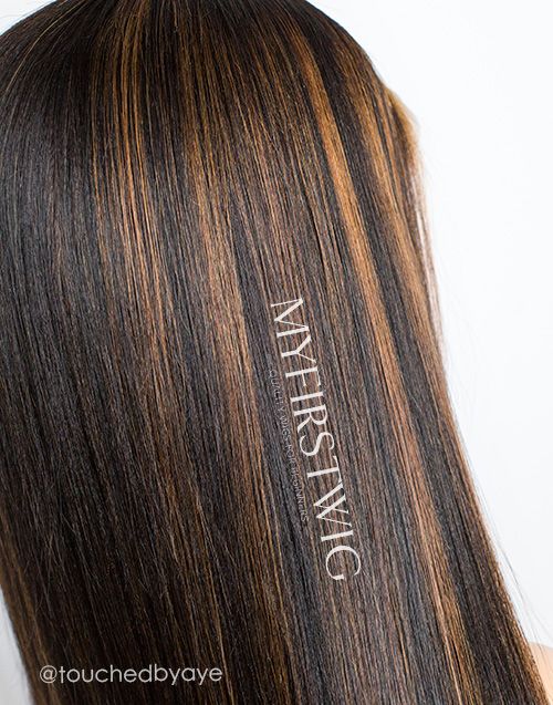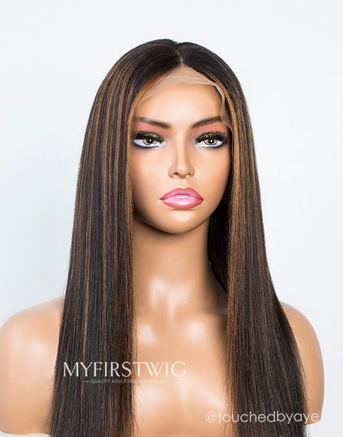 Touchedbyaye - Yaki Texture Highlight Brown Glueless Invisible Lace Front Wig - LFS010