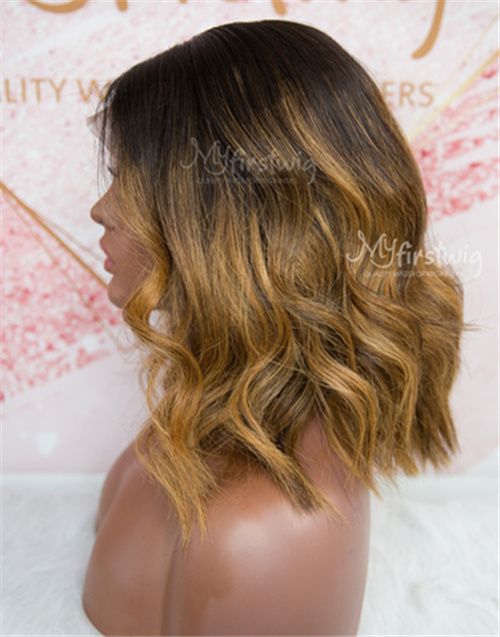 Donna – Wavy Bob Lace Front Wigs With Highlights - LFB016